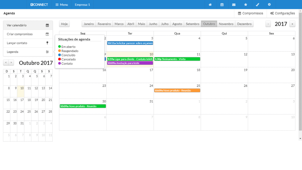 Ferramenta que permite o agendamento de compromissos para si ou para a equipe de vendas.