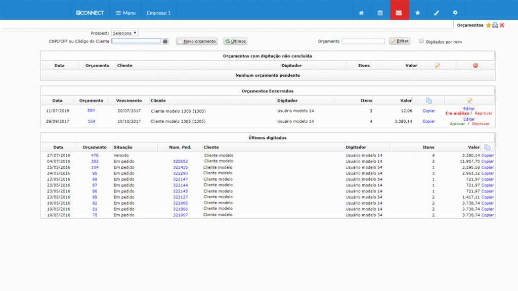Pedidos e orçamentos